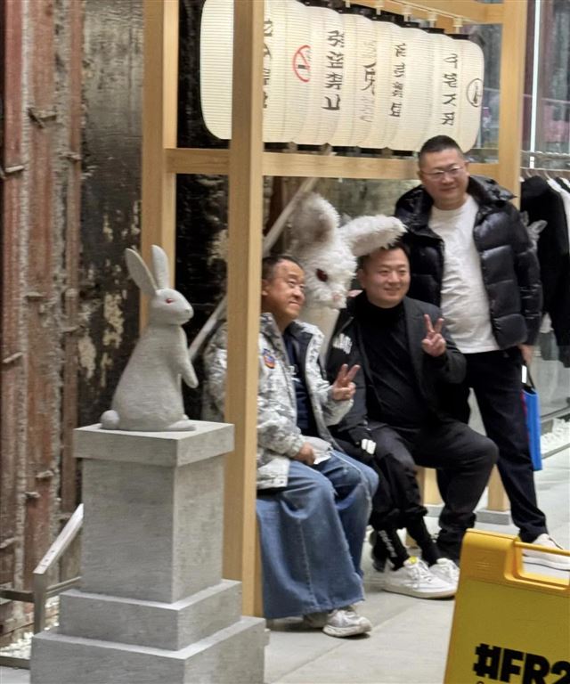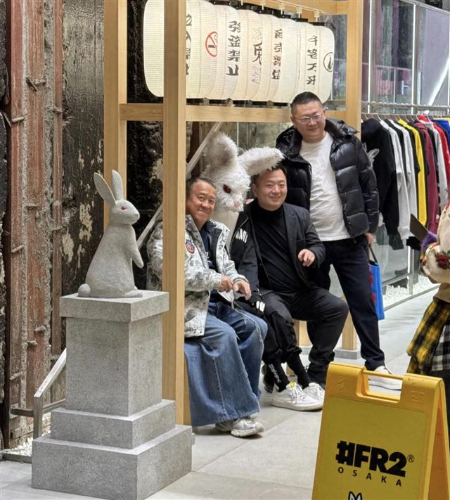 去了心斋桥的一处东谈主气景点游玩,还和兔子玩偶拍摄了合照。
