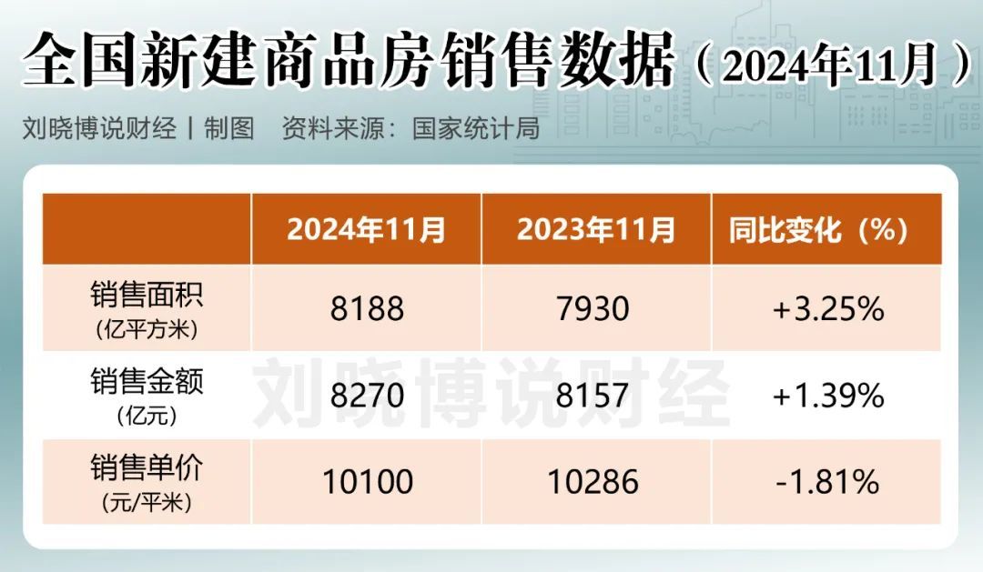 上图是证据统计局数据整理出来的,不错看到:11月天下新址卖了8270亿元,销售面积是8188亿往常米,同比2023年11月均出现了反弹。