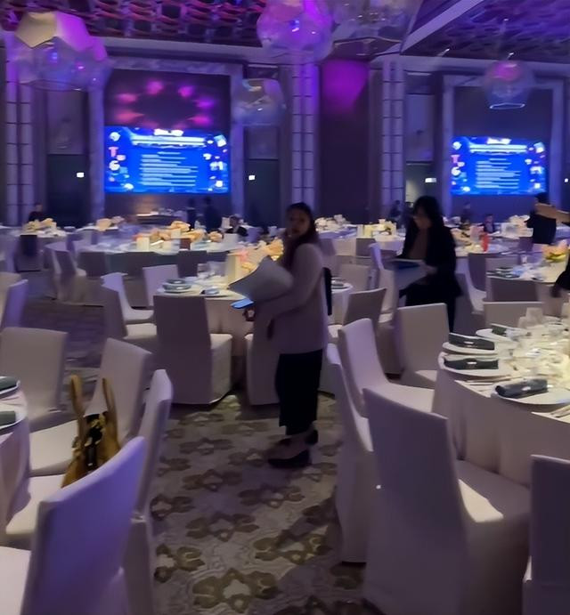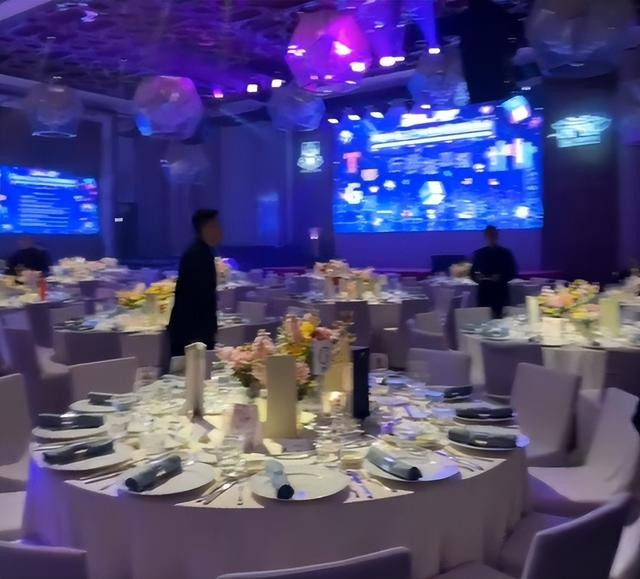 从晚宴现场的移交来看,这场晚宴的规格属实不低,光是嘉宾席皆有十几张桌子,现场的大屏幕更是有三四个之多,舞台上一个大屏幕,双方六个小屏幕,这现场竖立,险些“壕无东谈主性。”