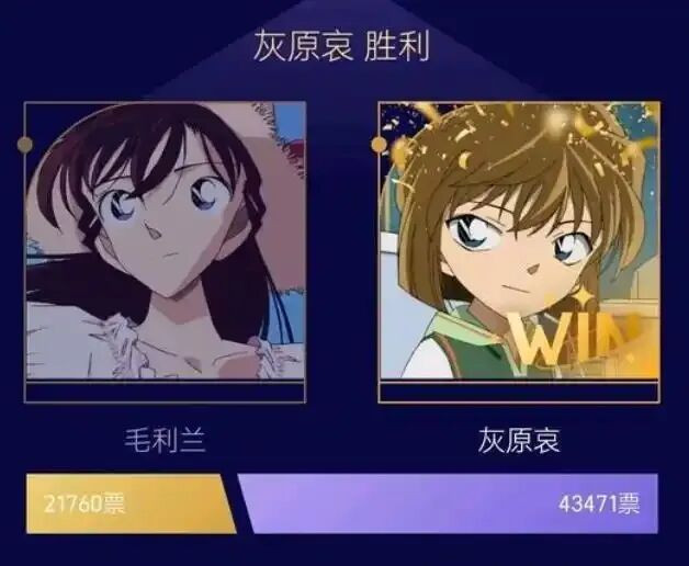 自此虎扑也就变嫌了战术,把女神大赛改成了一场互联网民调般的投票比赛。像是前年的女神大赛,官方就引入了毛利兰与灰原哀参赛,还安排让她们平直投票对决,可算让两家粉丝有了一次在第三方平台上较劲的契机。