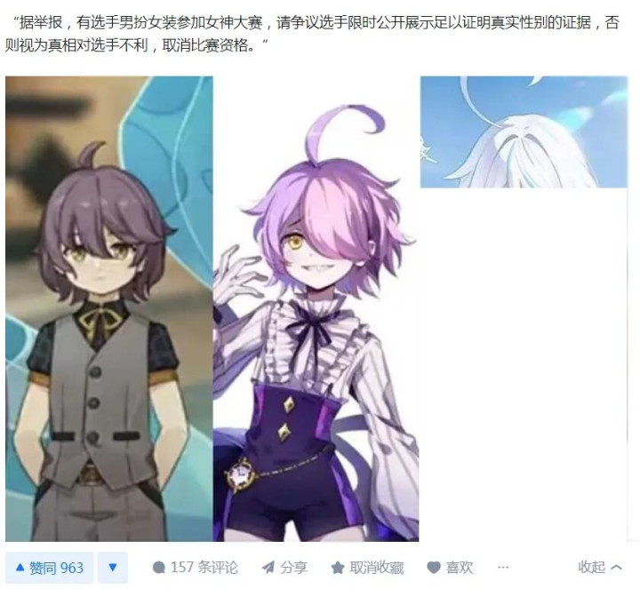 原来,米游玩家对于女神大赛这样的比赛是莫得什么风趣的。前年虎扑女神大赛就有雷电将军和流萤进入预选赛,但根底莫得米游玩家来投票。