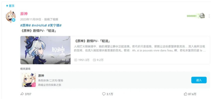 毕竟,以米哈游如今的影响力,它并不需要某个榜单来证明我方的东谈主气。芙宁娜夺冠后,《原神》仅仅把两年前她的PV置顶就动作出恢复了,原石那是一个也莫得啊。