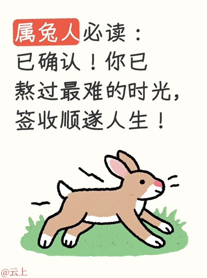诸君属兔的一又友,不论你是1951年、1963年、1975年、1987年、1999年、2011年照旧2023年出身的,今天咱说句掏心窝的果真话:最难的日子是真的翻篇了!