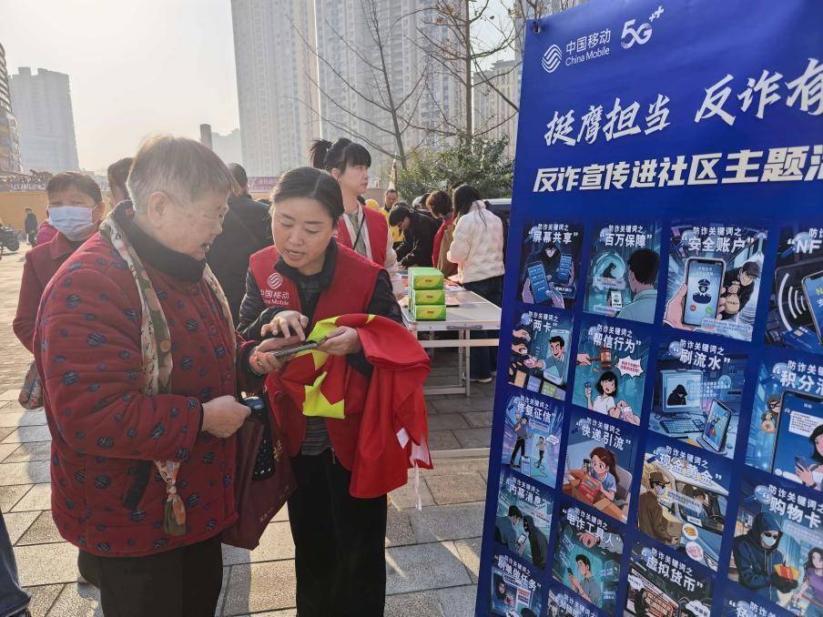 志愿者参预社区面向老年群体开展反诈宣传。安徽出动供图
