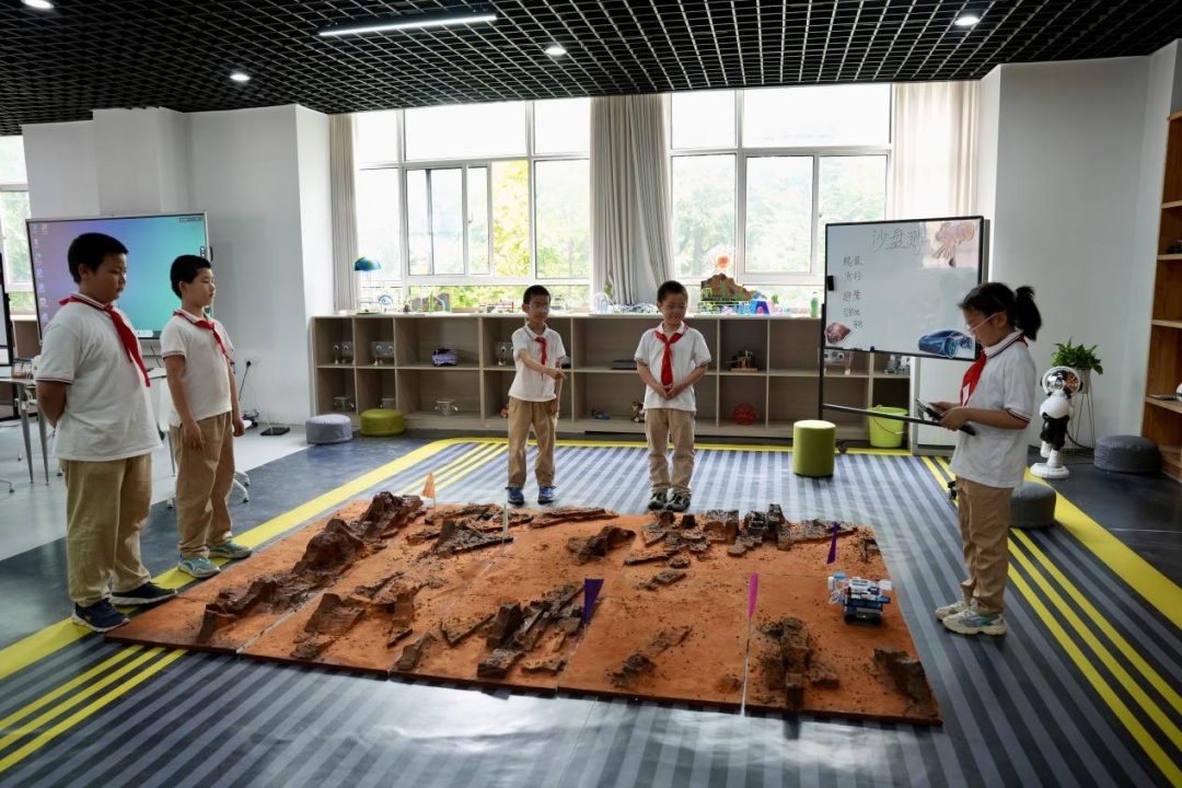 ▼武汉经济开发区神龙小学的学生们正在分析“火星”地貌 图/长江日报