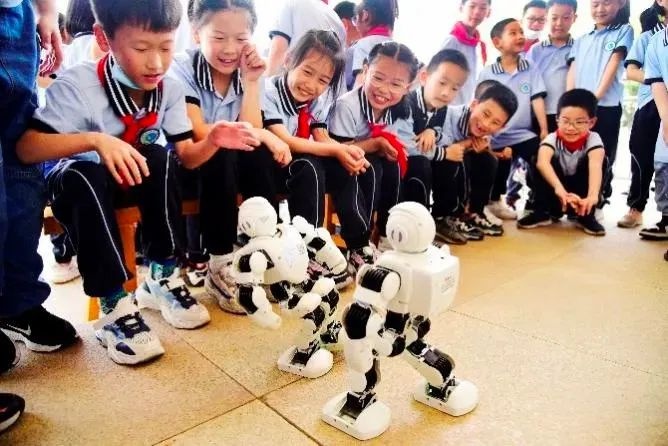 ▼学生们在课堂和机器人互动 图/长江种植计划院