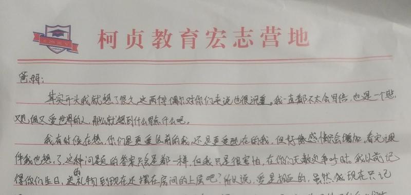 在柯贞拓展营,王琳惟一“寄出”的信。新京报府上图